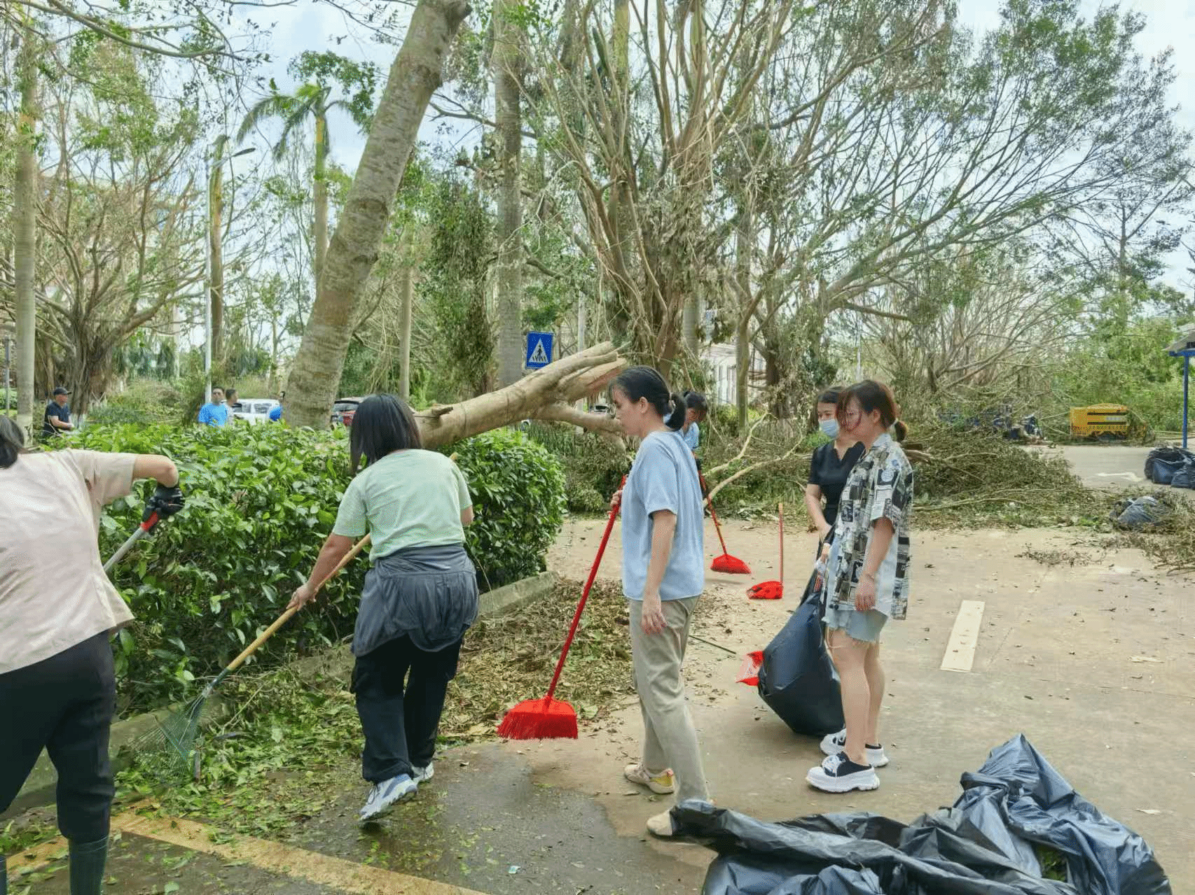 2024年9月6日下午至夜间,超强台风“摩羯”肆虐海口,海经贸校园受损严重。9月9日复工首日,计划财务处全体人员迅速行动,齐心协力排除道路障碍,搬移清理倒伏树枝和杂物。他们不畏艰难,奋战在重建一线,用实际行动诠释了责任与担当。经过不懈努力,学术交流中心周围道路恢复畅通,为师生复学创造了良好条件。
